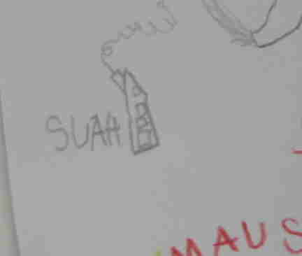Ein Junge hatte wissen wollen wie LOKOMOTIVE geschrieben wird.