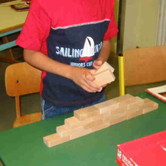 Mit den Klötzen der Lernuhr lässt sich auch etwas bauen. |
