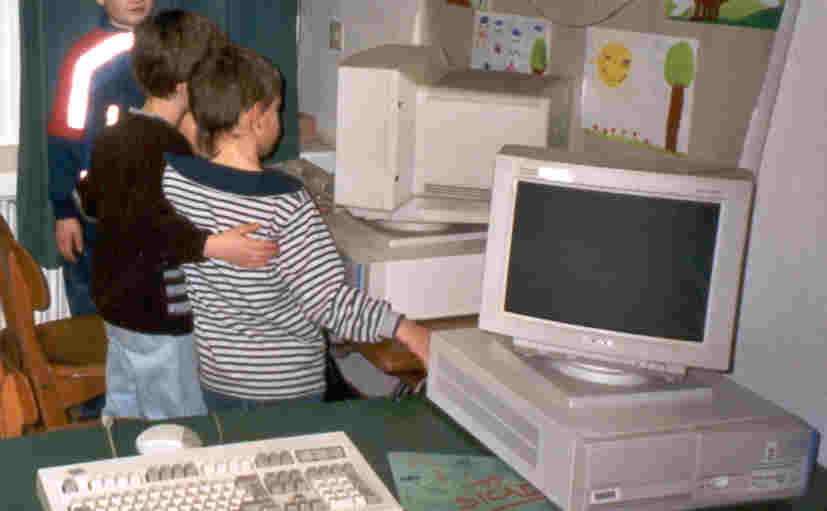 Es gibt drei Computerregeln: 1. Nur der Lehrer steckt den Stecker ein. 2. Zusammen arbeiten 3. Abwechseln